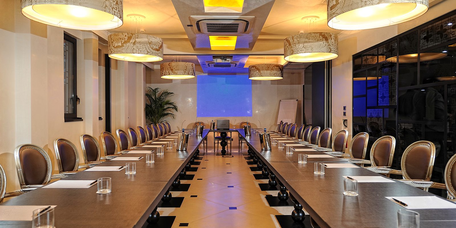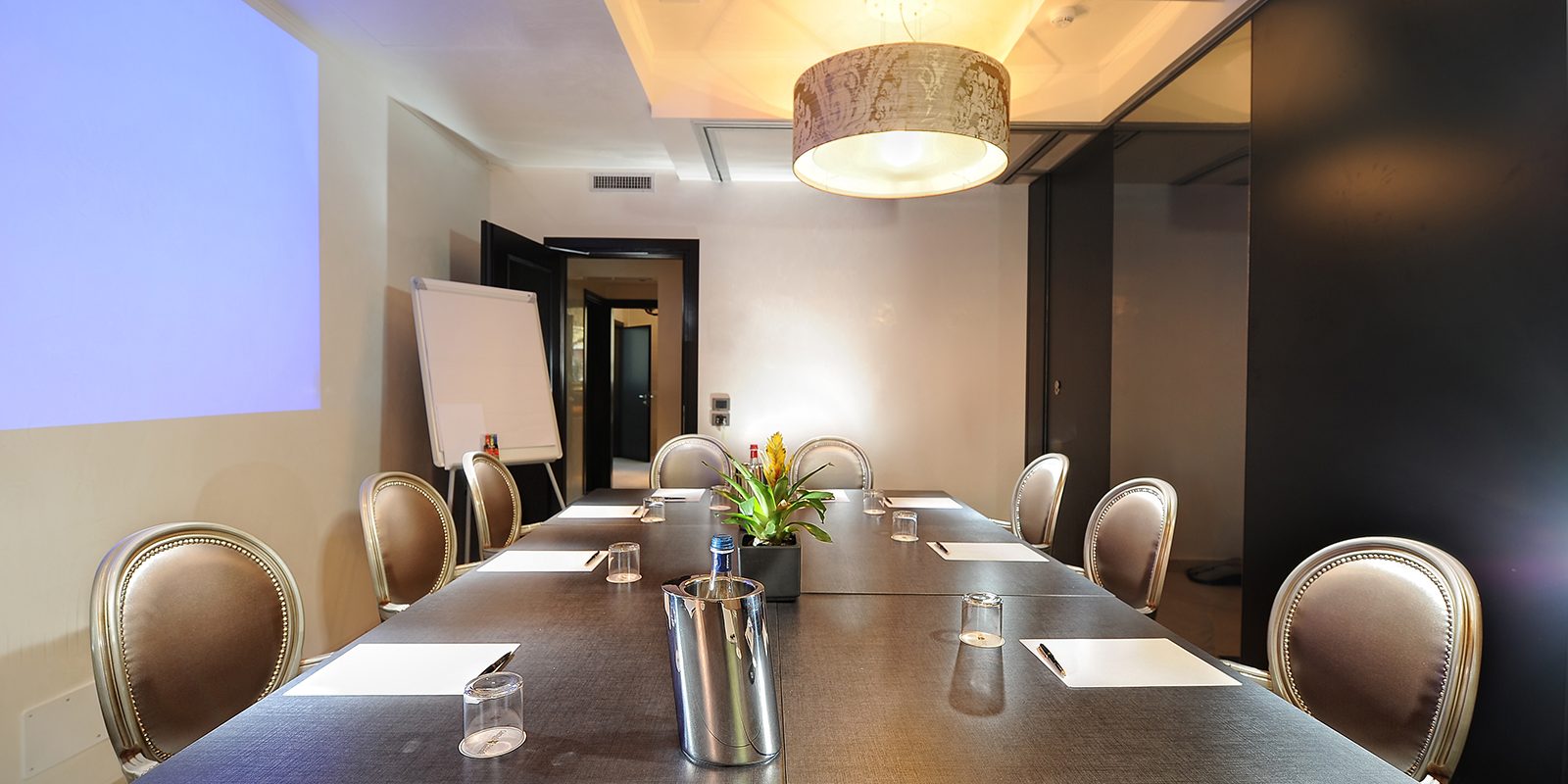La sala, illuminata dalla luce naturale, è completamente dotata di aria primaria e tecnologia avanzata.Attrezzatura inclusa nell’affitto della sala: proiettore, microfoni, audio, connessione internet wireless, lavagna a fogli mobili, block notes, penne. Proponiamo aperitivo di benvenuto, coffee break e business lunch.