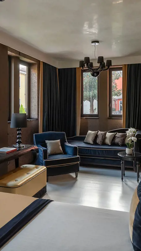 Exclusive and luxurious, the rooms at the Carnival Palace Hotel, a 4-star S hotel in Venice, offer a wide range of colors and furniture in perfect Venetian style. They all have that touch of style that makes them unique in their class. With views of the Cannareggio Canal and overlooking the hotel garden or the roofs of Venice, all the rooms have gold or silver leaf and Murano glass chandeliers.