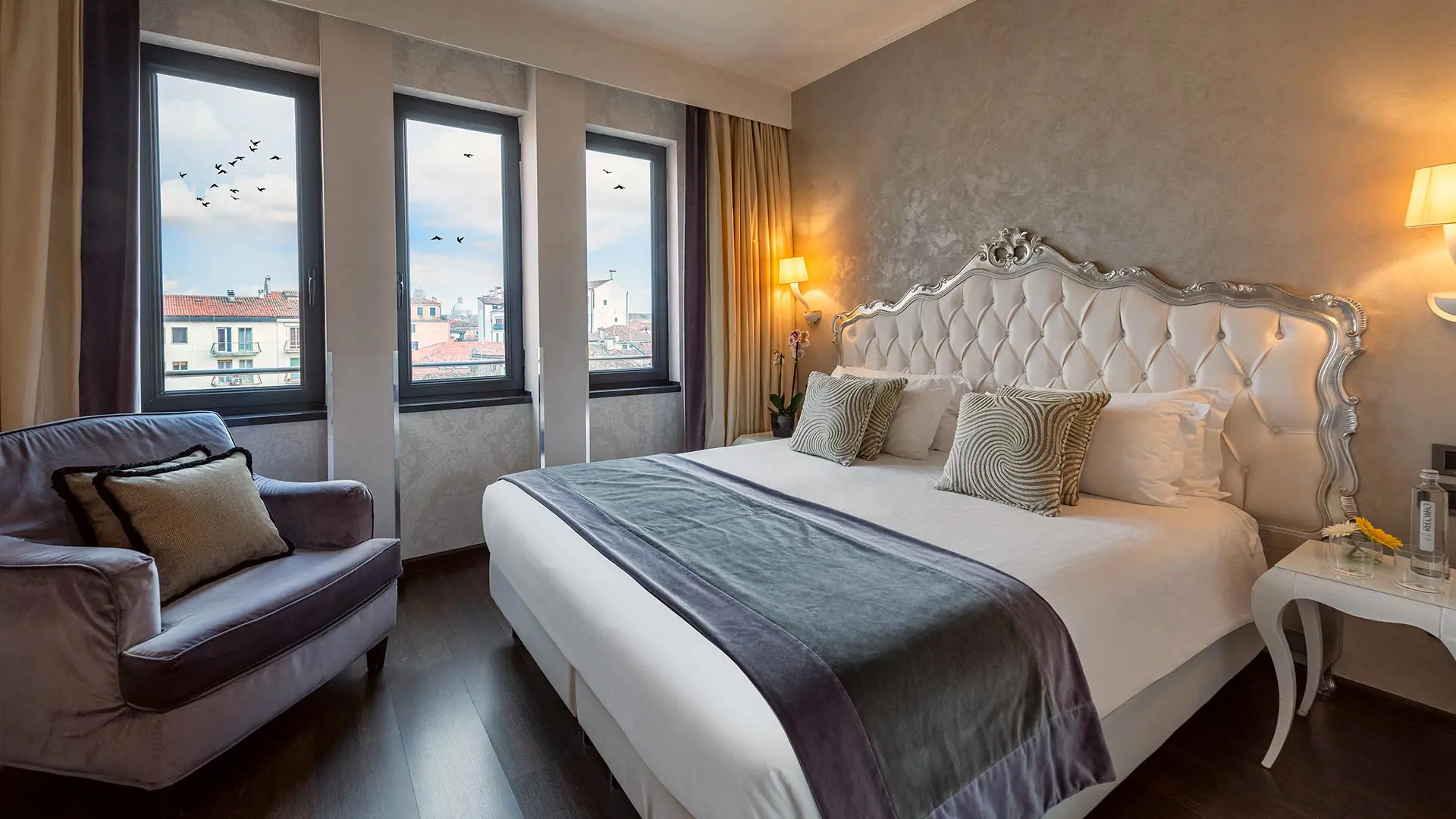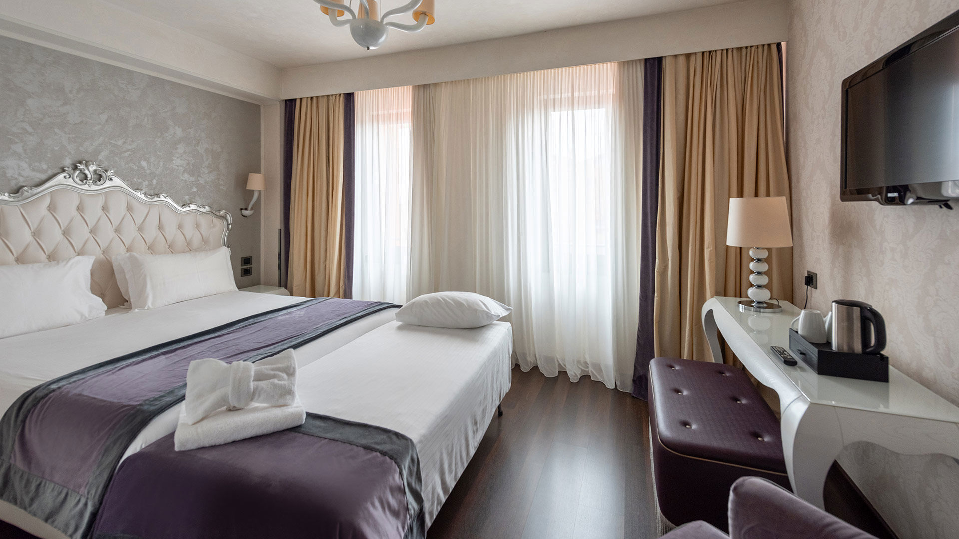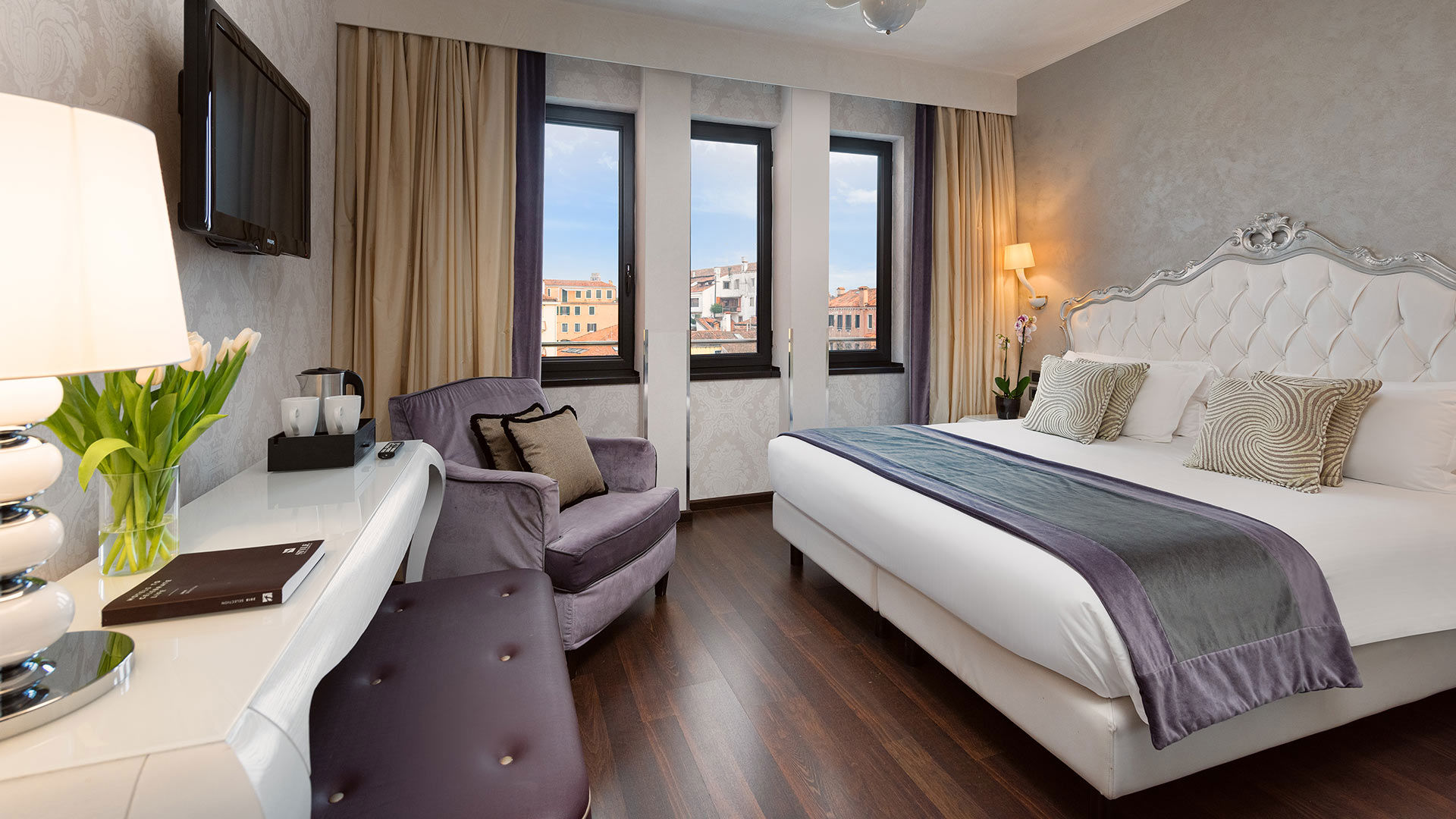 Be warmly welcomed by our exquisitely appointed and beautifully designed 20m2 rooms. Flanked by Venetian damask walls in sensual black and gold, lavish aubergine or calming ivory and silver tones, you will enjoy the relaxing view of our secret garden or to the city. You may choose from a queen-size bed or two twin-size beds, to suit your preference.