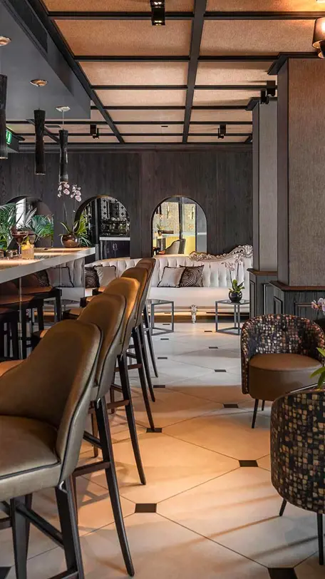 The Mask Lounge & Garden is inspired by the idea of a Carnival party in a grand Venetian residence, where elegance and mystery sweep you away on an entertaining evening. Immerse yourself in the warm atmosphere with uplifting lounge music and meet friends, stop for a snack, and enjoy an aperitif or a pleasant after-dinner drink.