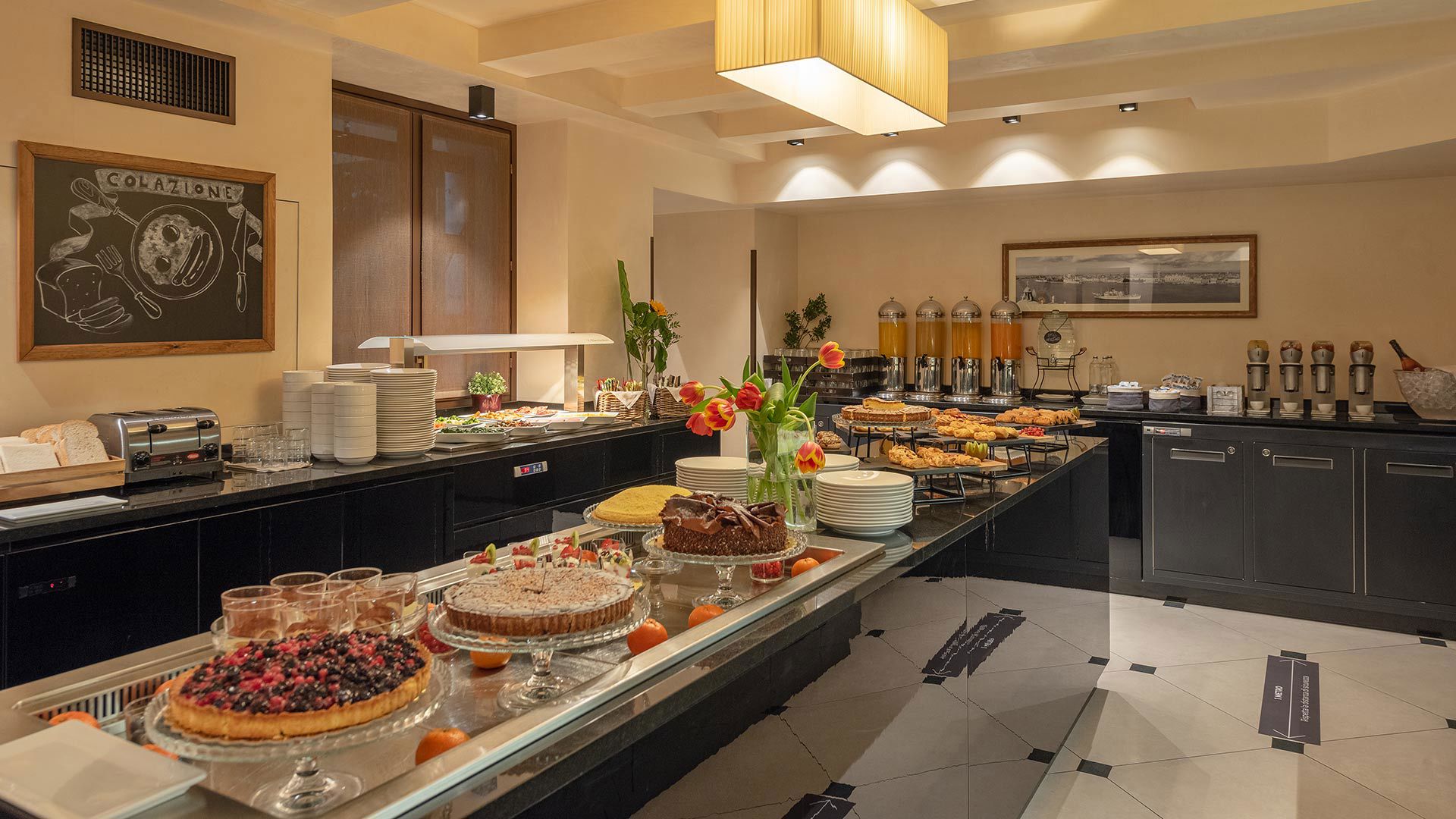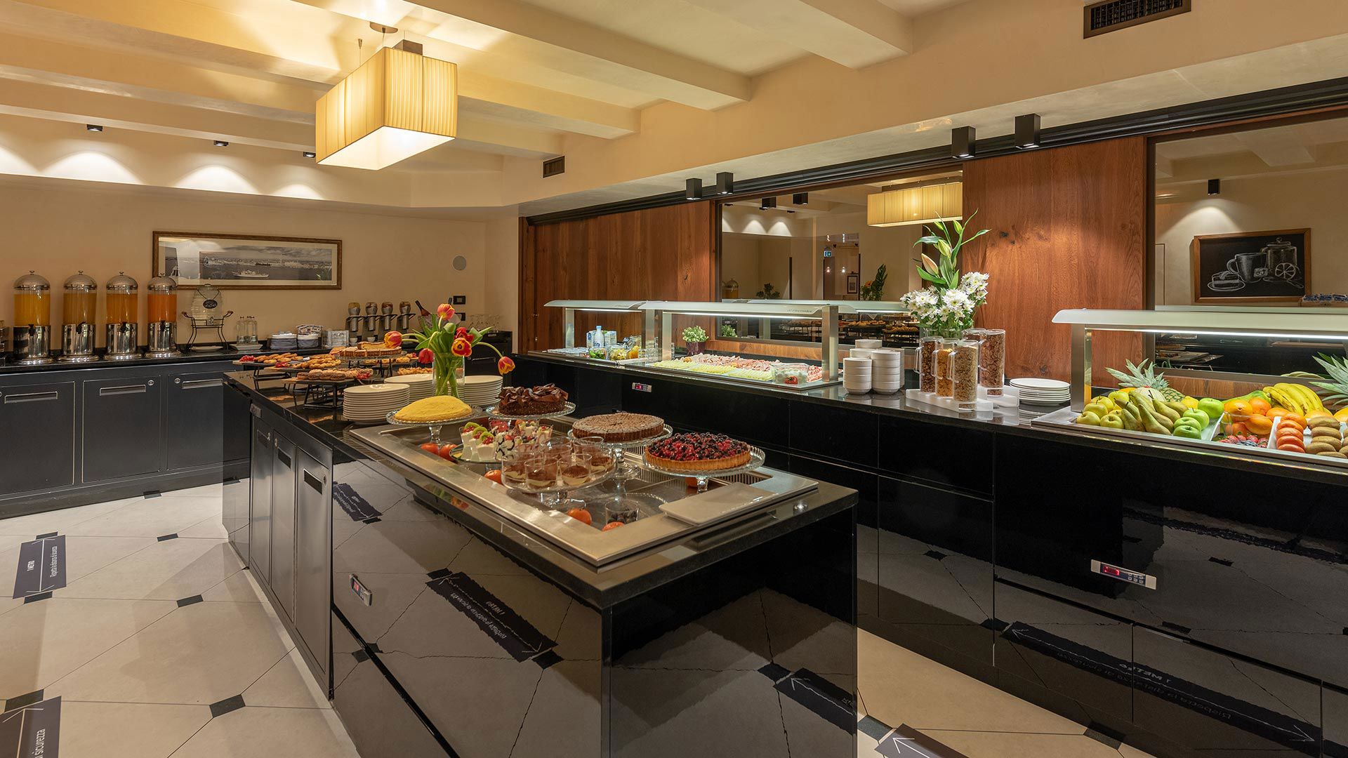 For a good cup of coffee or cappuccino you can ask our attentive Breakfast Room Team, who will be most happy to serve you an authentic Italian coffee. Enjoy accompanying your warm beverage with a fresh one by picking a juice from our fresh juices selection. And since there’s always something good to celebrate every day, you will also find a good Prosecco at our breakfast buffet!