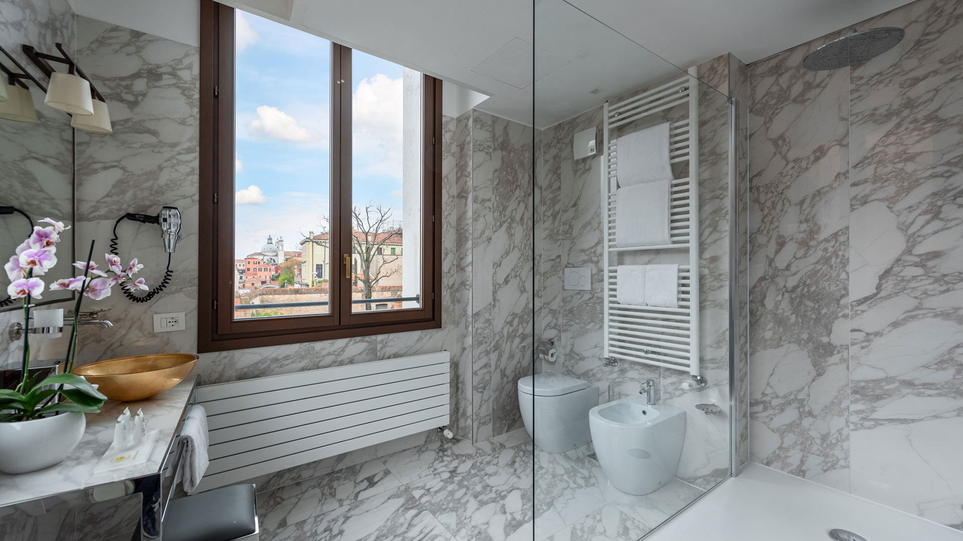 The most exceptional two-levels suite boasting a spectacular jacuzzi and undisturbed views of the Ognissanti Canal