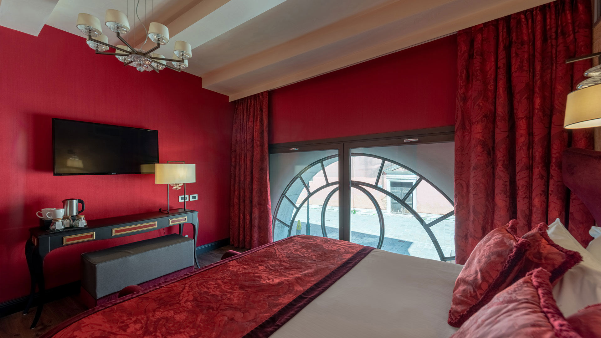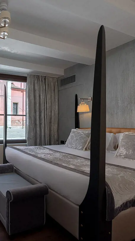 Ideally located on the ground floor and on the first floor, these suites are welcoming and elegantly decorated in ivory or red tones, and in a perfect location to admire the boats and gondolas on the small Ognisanti canal.