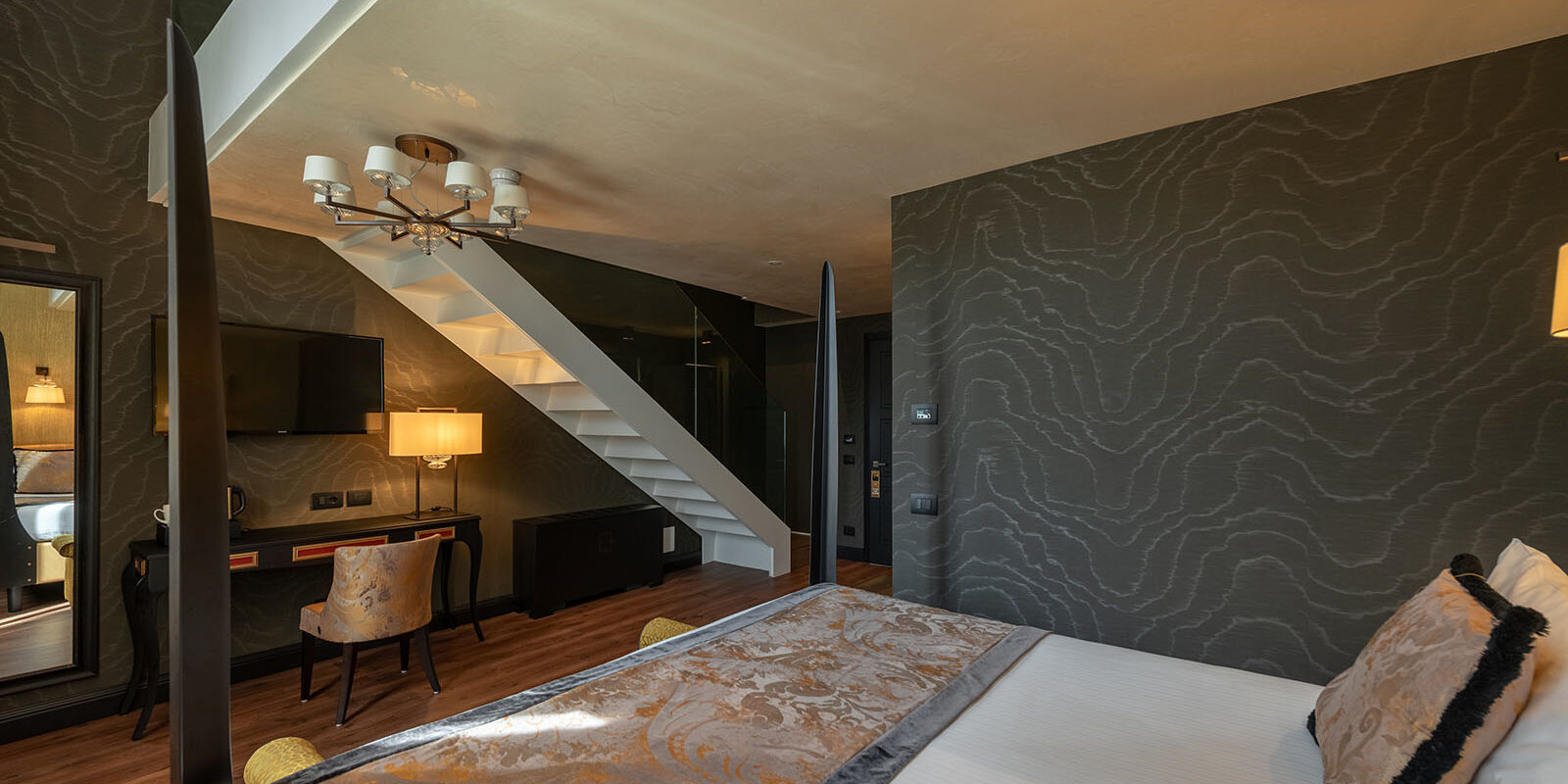 Giving our Guests a homely feeling, this spacious ambience of 43mq2, exquisitely appointed in aqua colors, grant comfort and bespoken attention to traveling families in 2 floors.