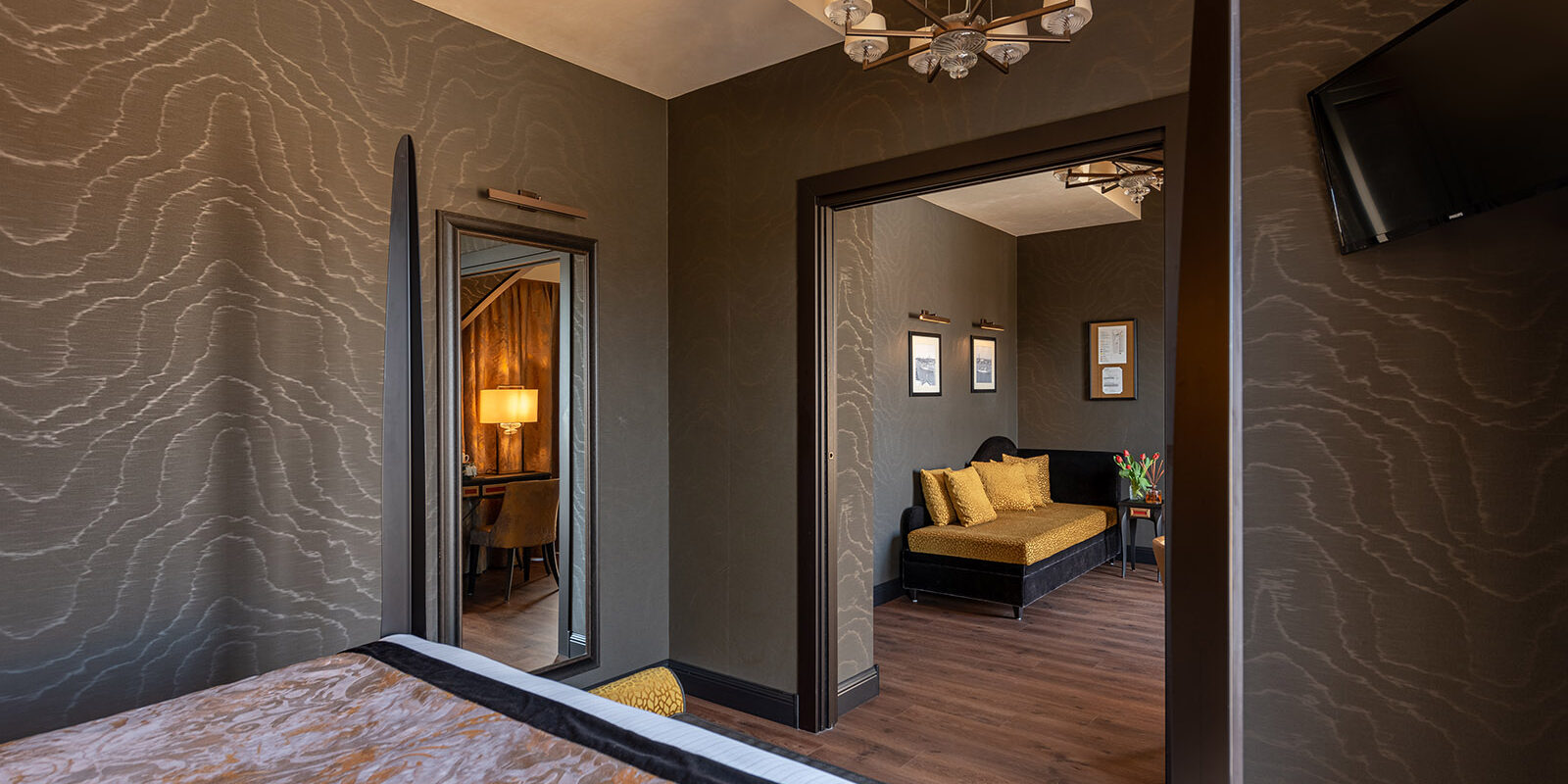 Queste lussuose suite di 52 m2 si trovano al quinto piano, e offrono una vista spettacolare sulle cupole e le torri di Venezia. Hanno due grandi balconi di 18m2, uno con Jacuzzi esterna, e sono state pensate per permettere ai nostri ospiti di godere di attimi di benessere totale, ammirando le stelle in ogni momento dell’anno. Con damaschi veneziani dall’originale tono nero, l’arredo moderno è completato da una scrivania, una panca, una poltroncina e un armadio a vista. Il bagno, in marmo Calacatta, ha una doccia grande in Corian. Cromoterapia e consolle con lavandino in foglia oro ne completano l’eccezionale bellezza.